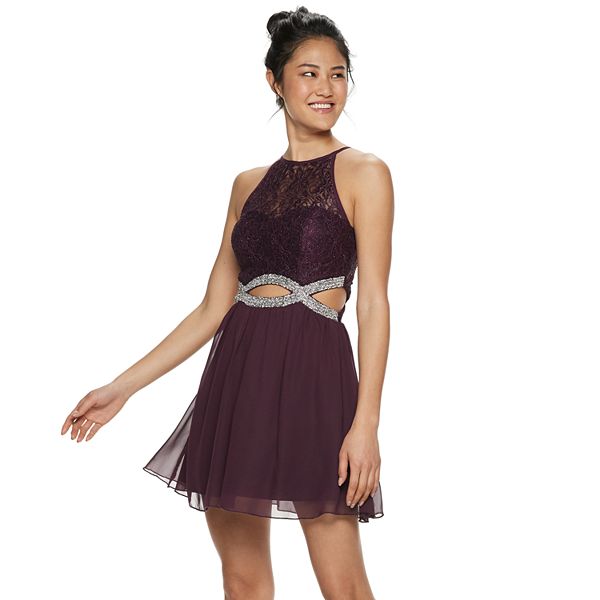 Juniors Speechless Lace Chiffon Jeweled Infinity Waist Skater Dress